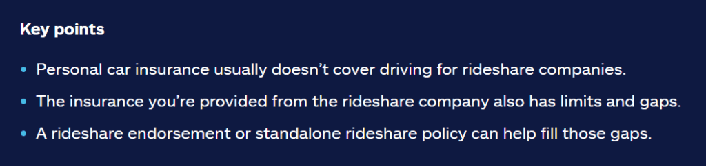 - Adds gig coverage to your personal policy